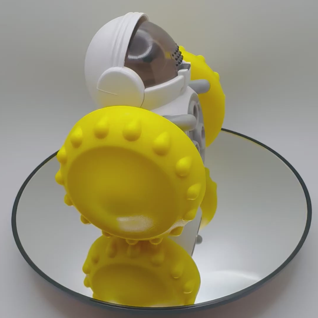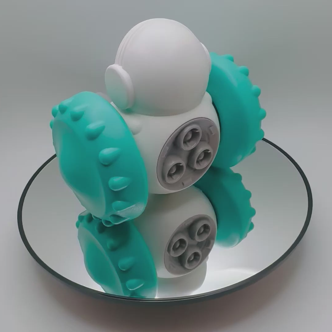 - Robot Fun & Function: Designed to engage both dogs and cats, this feeder features a playful robot-like design that wobbles and tilts as your pet interacts with it. The flip-type transparent granary lid allows you to easily add dry food or treats, which then fall out as your pet plays, rewarding them with every interaction.