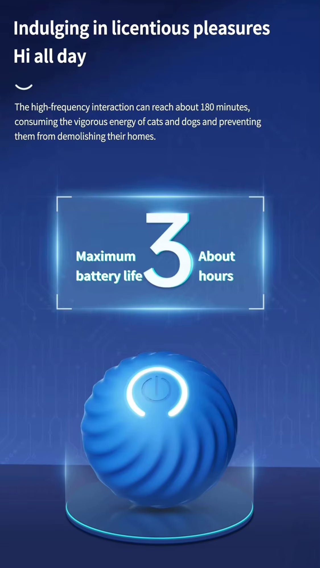 Up to 3 hours of playtime per charge ensures extended entertainment for your furry friends.
